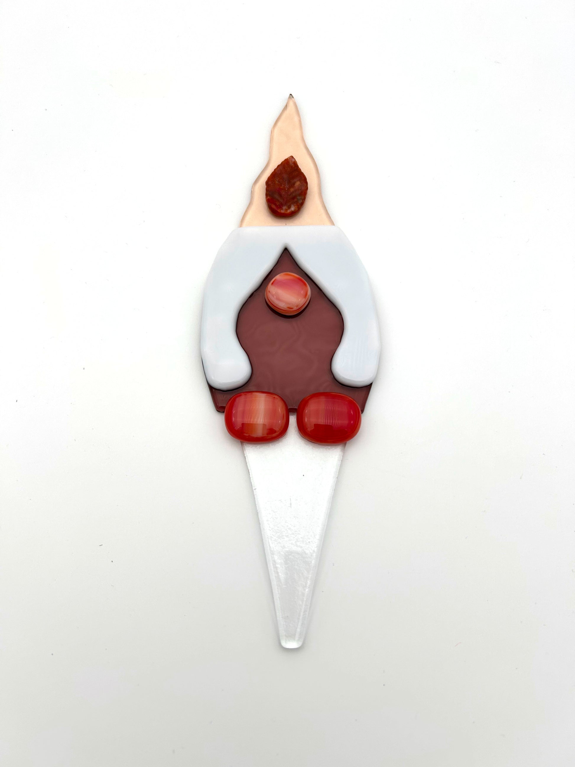 Garden Art Gnome Girl Purple Coat Gold Hat with Fall Leaf