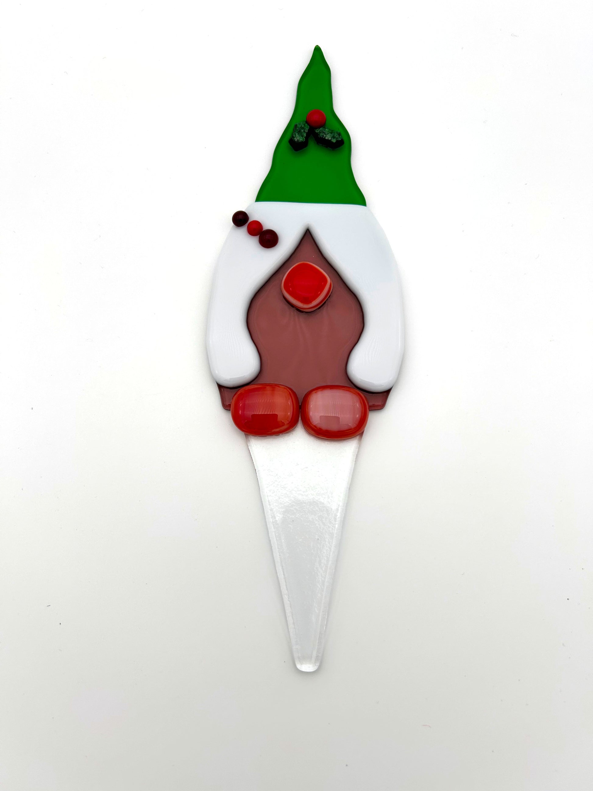 Garden Art Gnome Girl Purple Coat Green Hat with Holly
