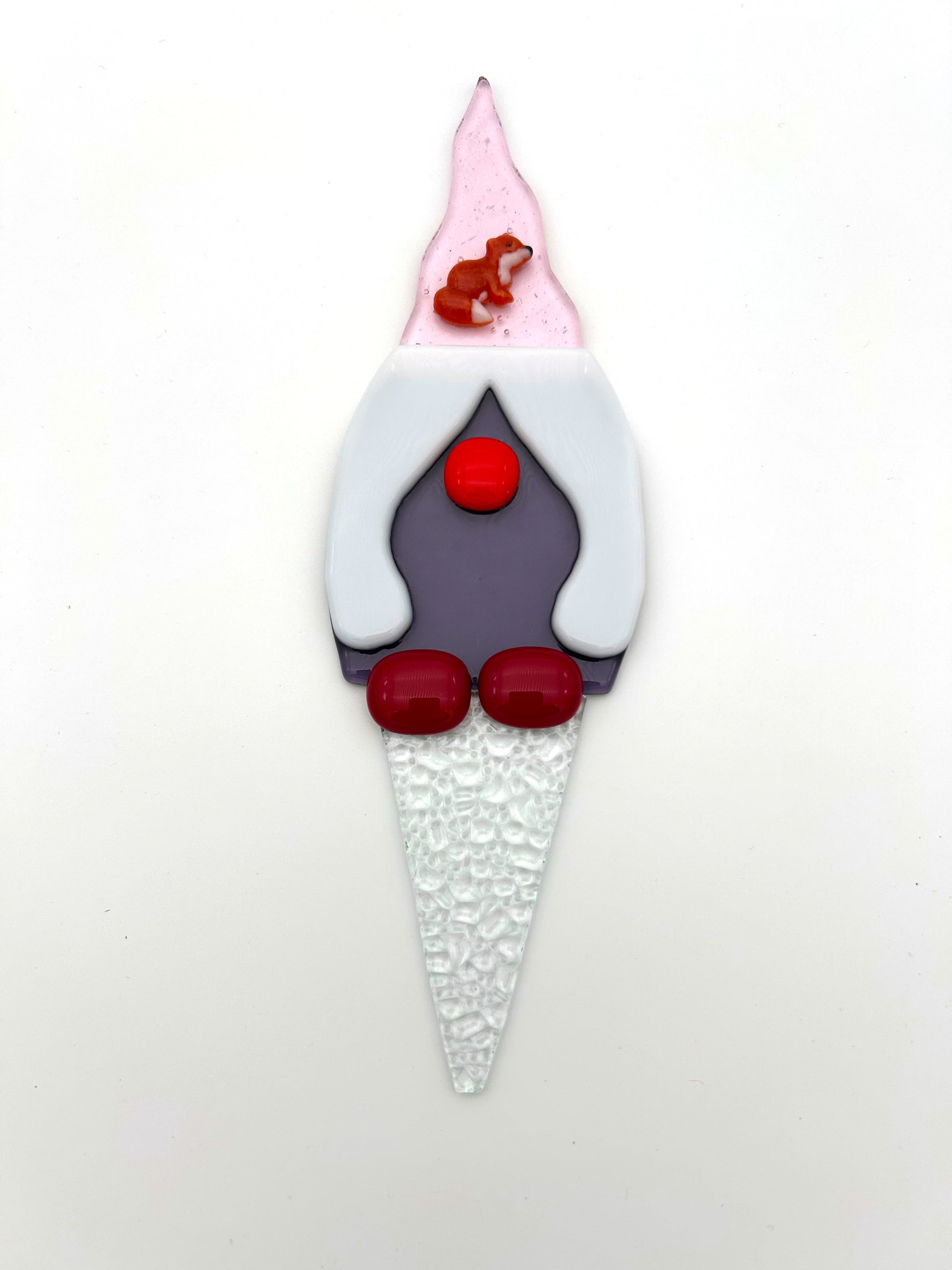 Garden Art Gnome Girl Purple Coat Pink Hat with Fox