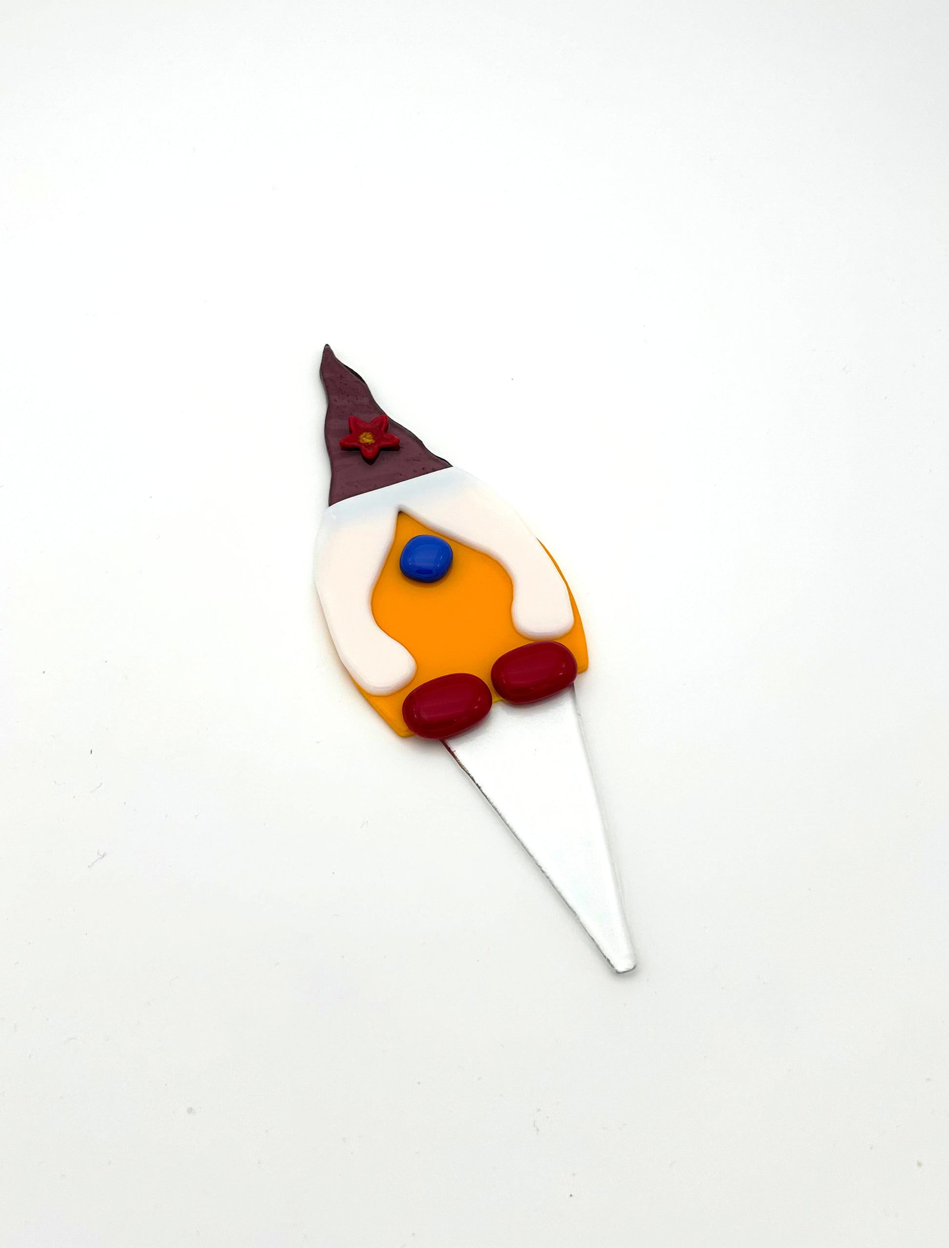 Garden Art Gnome Girl Yellow with Purple Cap with Flower