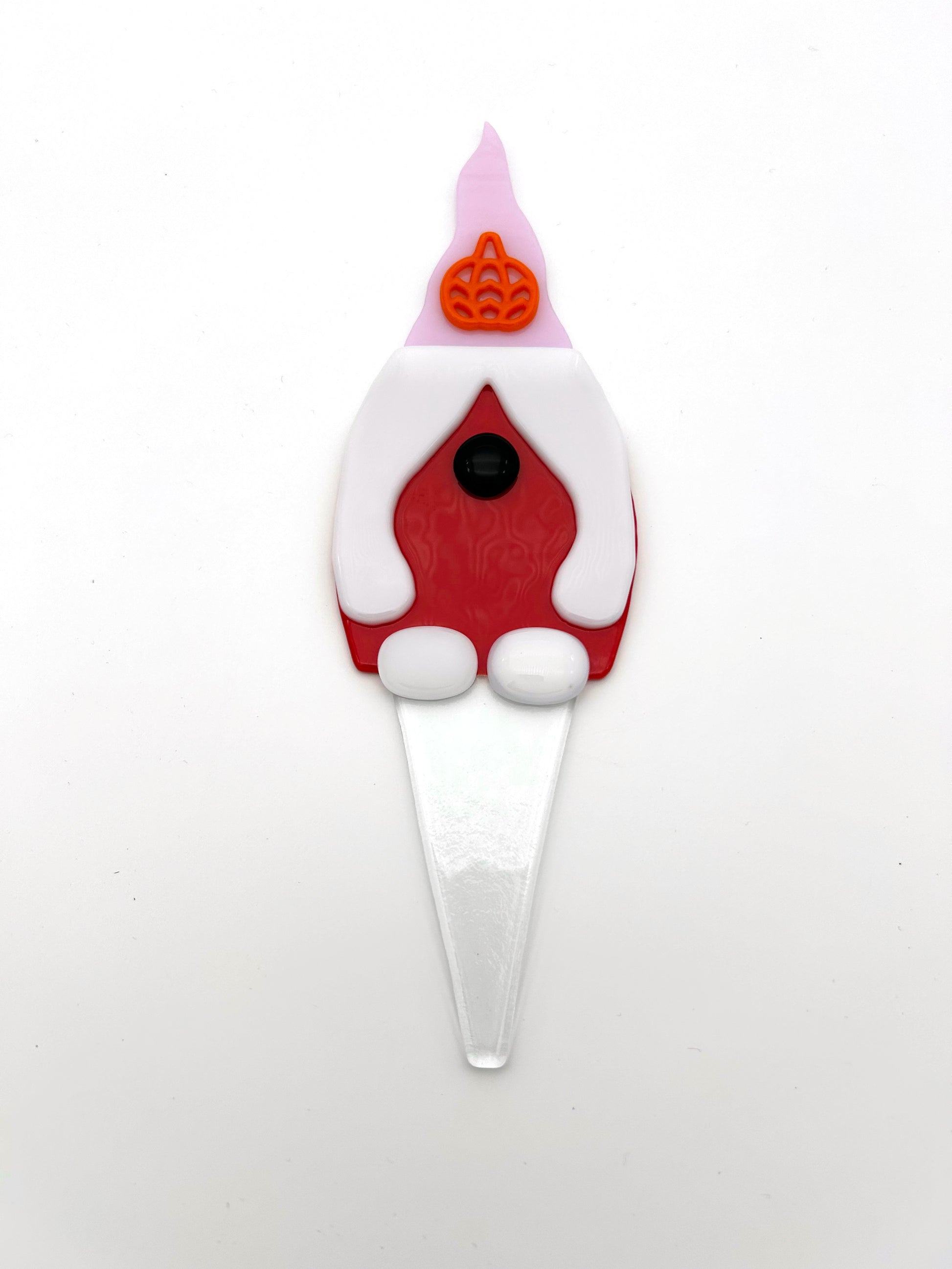 Garden Art Gnome Girl Red Coat Pink Hat with Pumpkin